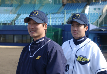 "타임! 투수 교체. 정재훈 나가고 정재훈!". 올 시즌 김경문 두산 감독이 이렇게 외치게 될 가능성이 상당히 높아 보인다. 일본 쓰쿠미에 차려진 두산 캠프에서 두 명의 정재훈이 시즌을 준비하고 있기 때문이다. '큰 정재훈'은 모두가 아는 정재훈(26)이다. 지난해 홀연 나타나 30세이브로 구원왕에 오르며 한국시리즈 진출을 이끌어낸 두산 불펜의 새 기둥이다. 정재훈이 또 하나 생겼다. 지난해 말 상무를 제대하고 두산에 입단한 신인 투수 정재훈(25)이다. 곰돌이 유니폼을 입고 동명이인을 만나게 된 과정부터 평범하지가 않다. 정재훈은 지난 2000년 배명고 졸업 당시 내야수로 두산에 2차 지명됐지만 단국대에 진학했다. 내야수가 필요 없어졌다고 판단한 두산이 중도에 지명권을 풀었고 프로 팀의 선택을 받지 못한 정재훈은 대학 졸업후 상무에 입대했다. 상무에서 투수로 전향한 정재훈은 군복무를 마친 뒤 두산과 계약금 없이 연봉 2000만원에 계약, 6년전 자신을 지명한 팀에서 야구인생을 이어가게 됐다. 큰 정재훈과 작은 정재훈은 묘하게도 서로 닮았다. 나이도 한살 차이로 큰 정재훈이 많고 등번호도 나란히 41번과 40번이다. 오른손 투수인 두 정재훈은 한자 이름까지 '鄭載勳'으로 똑같다. 두 정재훈은 쓰쿠미 캠프에서 훈련은 물론 식사 시간에도 붙어다니며 많은 얘기를 나누고 있다. 윤석환 투수코치는 "투구폼이 아주 깔끔하고 부드러워 볼끝이 좋다. 타자가 치기 힘든 공이 들어온다"며 "올 시즌 중간계투 요원으로 활용할 수 있을 것 같다. 앞으로 성장이 기대된다"고 신인 정재훈을 높이 평가했다. 정재훈은 지난 2년간 상무 소속으로 2군 경기 35게임에 등판, 10승 3패 1세이브, 방어율 3.96을 기록한 바 있다. 올 시즌 두산 팬들은 잠실구장에가면 정재훈-정재훈 '계투쇼'를 덤으로 구경하게 될 것 같다. 두산 마무리 정재훈(왼쪽)과 신인투수 정재훈. /두산 베어스 제공 이종민 기자 mini@osen.co.kr [Copyright ⓒ 한국 최고의 스포츠 엔터테인먼트 전문 미디어 OSEN(www.osen.co.kr) 무단전재 및 재배포 금지]