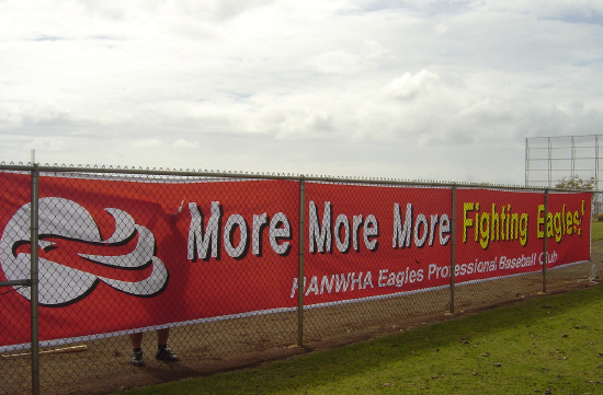 한화가 전지훈련 중인 하와이 센트럴 오하우 레지널 파크에 16일(한국시간) 2006시즌 이글스 공식 캐치프레이즈가 적힌 현수막이 내걸렸다. 한화는 일반 팬 공모를 통해 최근 캐치 프레이즈를 확정했다. /한화 이글스 제공 [Copyright ⓒ 한국 최고의 스포츠 엔터테인먼트 전문 미디어 OSEN(www.osen.co.kr) 무단전재 및 재배포 금지]