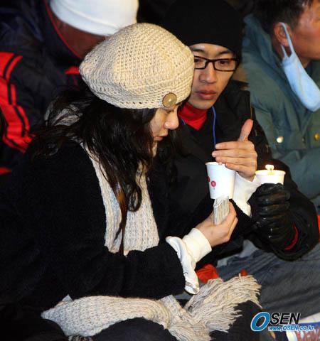 스크린쿼터 지키기 1인시위에 나섰던 톱스타들과 가수 개그맨 등이 함께하는 촛불문화제 '쌀과 영화'가 17일 오후 6시 서울 광화문 시민열린광장에서 열렸다. 배두나가 옆사람으로 부터 초에 불을 붙이고 있다./광화문=박영태기자 ds3fan@osen.co.kr [Copyright ⓒ 한국 최고의 스포츠 엔터테인먼트 전문 미디어 OSEN(www.osen.co.kr) 무단전재 및 재배포 금지]