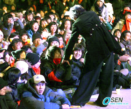 스크린쿼터 지키기 1인시위에 나섰던 톱스타들과 가수 개그맨 농민이 함께하는 촛불문화제 '쌀과 영화'가 17일 오후 6시 서울 광화문 시민열린광장에서 열렸다. 가수 김장훈이 노래를 부르던 도중 무대 아래로 내려가 영화배우 이준기의 손목을 잡아 일으켜 세우고 있다./광화문=박영태기자 ds3fan@osen.co.kr [Copyright ⓒ 한국 최고의 스포츠 엔터테인먼트 전문 미디어 OSEN(www.osen.co.kr) 무단전재 및 재배포 금지]
