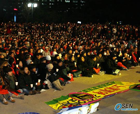 지난 8일 ‘스크린쿼터 사수’ 집회를 열었던 영화인들이 17일 오후 6시 서울 광화문 정부종합청사 앞 시민열린광장에서 농민과 노동자, 시민이 한 자리에 모이는 ‘쌀과 영화’라는 촛불문화행사를 펼쳤다. 이날 특히 눈길을 끌었던 것은 ‘참석한 영화인이 누구냐?’ ‘몇명이 모였냐?’ 등이 아닌 바로 집회 장소였다. 8일 서울 광화문 동화면세점 앞에서 ‘스크린쿼터 사수’를 외쳤던 영화인들은 농민들과 손을 잡고 17일 집회장소를 시민열린광장으로 옮겼다. 시민열린광장은 ‘열린광장’이라는 의미를 가지고 있지만 무엇보다도 시민열린광장이 위치한 지리적 위치가 그들의 목소리를 내기에 가장 적절한 곳이었다. 광장 정면에는 정부종합청사가 위치해 있고 오른편으로는 경복궁을 지나 청와대, 왼편으로는 한-미 FTA와 스크린쿼터의 상대국인 미국의 대사관이 자리잡고 있는 곳이었기 때문이다. 다시말해 이 광장은 정부에 FTA와 스크린쿼터 축소에 대한 당위적인 설명과 대화의 장으로 나올 것을 요구하는 자리이자, 식량주권과 문화의 다양성을 위협하는 미국에 대한 항의의 뜻을 전달하기 위한 최적의 장소였던 것. 행사에 참가한 최민식은 이날 촛불문화행사에 대해 일반적인 시위가 아닌 "문화인으로서 즐기면서 자신들의 뜻을 전하는 자리"라고 설명했다. 또 “현 정부가 ‘참여정부’라는 타이틀에 걸맞은지 반문해 봐야 한다”며 대화가 이루어질 때까지 계속해서 시위를 전개해 나가겠다는 각오를 밝히기도 했다. 광장으로 나와 대화를 시도하려는 영화인과 농민, FTA 체결과 스크린쿼터 축소 방침을 세우고 묵묵부답인 정부의 갈등의 골이 깊어만 가고 있다. 박준범 기자 pharos@osen.co.kr [Copyright ⓒ 한국 최고의 스포츠 엔터테인먼트 전문 미디어 OSEN(www.osen.co.kr) 무단전재 및 재배포 금지]