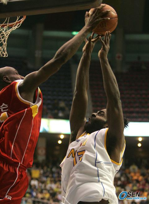 19일 잠실체육관에서 벌어진 2005~2006 KCC 프로농구 서울 삼성 썬더스와 대구 오리온스의 경기는 3쿼터 초반 20여 점 차로 앞서던 삼성이 오리온스 김병철의 연이은 3점슛에 고전, 96-93으로 신승했다. 3쿼터서 삼성 쉘리 클락의 골밑슛을 오리온스의 리 벤슨이 완벽하게 블로킹하고 있다./잠실체=손용호 기자spjj@ose3n.co.kr [Copyright ⓒ 한국 최고의 스포츠 엔터테인먼트 전문 미디어 OSEN(www.osen.co.kr) 무단전재 및 재배포 금지]