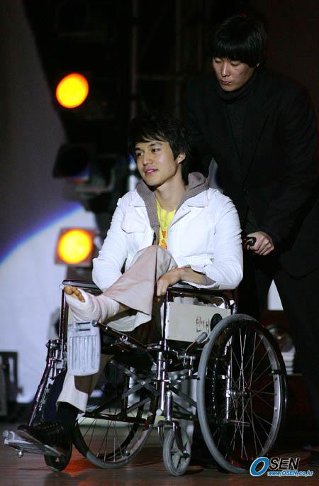 대중들의 마음 속에 각인된 이미지를 먹고 사는 이들이 연예인이다. 그리고 그 이전에 연예인도 하나의 인간이다. 연예인과 인간이라는 두 가지 표상은 이들 직업군에 속한 사람들의 행동을 이해하는 결정적인 준거가 된다. 화장기 없는 맨 얼굴을 노출하기 싫어한다든지, 스캔들에 휘말렸을 때 진실보다는 이미지를 먼저 걱정한다든지 하는 연예인의 모습이 있는가 하면 정에 흔들리고 사랑에 휘둘리는, 인간 본연을 숨김없이 보여주는 보통 사람으로서의 그들도 있다. ‘두 얼굴의 숙명’을 타고난 이들이 연예인이다. 두 가지 중 어떤 모습이 옳다고 함부로 말할 수 없다. 다만 이런 연예인도 일반인의 상상을 뛰어넘는 용기를 보여 줄 때 더욱 뜨거운 박수를 받는다는 사실만은 부인할 수 없다. SBS TV 을 통해 스타반열에 오른 이동욱(25)은 19일 연세대 대강당에서 열린 팬미팅에서 휠체어를 타고 관객들 앞에 섰다. 이동욱은 “한달 전의 약속을 지키기 위해서”라고 했다. 산악용 오토바이를 타다가 왼 발등을 크게 다친 이동욱은 행사 전날 급하게 깁스를 풀었지만 봉합수술 실밥이 그대로 남아 있어 붕대로 상처부위를 칭칭 감은 채였다. 한 눈에 봐도 제 몸 가누기조차 힘든 상태였다. 하지만 이동욱은 수십여 매체가 한꺼번에 달려든 취재경쟁을 모두 받아냈고 1600여 팬들 앞에도 당당히 섰다. 하반신 마비라는 재앙을 딛고 ‘휠체어 댄스’로 돌아온 강원래는 “멋진 장애인이라는 말을 듣고 싶다”고 말한 적이 있다. 장애인이라는 편견은 연예인이 아닌 '보통 사람'도 견디기 힘든 굴레이지만 강원래는 이겨냈다. 멋진 장애인이 아니라 멋진 인간으로 되돌아온 그였다. 물론 이동욱과 강원래를 직접 비교할 바는 아니다. 하지만 둘을 팬들 앞에 서게 한 바탕엔 ‘약속의 힘’이 공통적으로 있다. 반드시 무대에 돌아간다는 의지가 가수 강원래를 되살려냈고 팬들을 실망시킬 수 없다는 마음가짐이 이동욱의 휠체어 투혼을 불렀다. 이들의 용기에 아낌없는 박수를 보낸다. 글=강희수 기자 100c@osen.co.kr 사진=주지영 기자 jj0jj0@osen.co.kr 19일 연세대에서 열린 팬미팅에서 이동욱이 휠체어를 탄 채 주위 사람의 도움을 받으며 무대로 나서고 있다. [Copyright ⓒ 한국 최고의 스포츠 엔터테인먼트 전문 미디어 OSEN(www.osen.co.kr) 무단전재 및 재배포 금지]