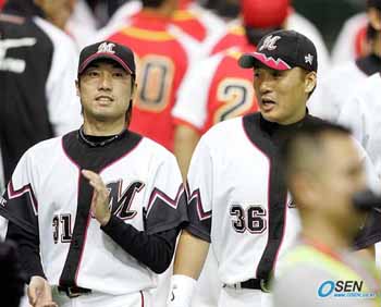 “이승엽이 무섭다”. WBC 아시아예선 한국전 등판이 유력한 일본 대표팀 와타나베 슌스케(롯데)가 이승엽에 대한 경계를 늦추지 않았다고 이 21일 보도했다. 일본 대표팀 소집일인 지난 20일 후쿠오카에 도착한 와타나베는 작년까지 팀메이트였던 이승엽에 대해 언급했다. “같은 팀 선수일 때는 믿음직했지만 적이 되면 역시 무섭다”고 밝혔다. 와타나베는 일본 언론이 한국전 선발투수로 지목한 선수. 왕정치 감독으로부터는 일본대표팀의 에이스로 지명되기도 했다. 와타나베는 "아직 한국선수들의 경기 모습을 담은 비디오테이프를 보지는 않았다. 이제부터라도 열심히 분석하겠다”고 사실상 한국전 등판이 확정된 듯한 발언을 했다. 와타나베가 이승엽에 대해 경계심을 품고 있기는 하지만 이승엽 역시 와타나베의 실력을 인정하는 발언을 여러 차례 했다. 지난해 코나미컵 아시아시리즈 결승전을 앞두고 와타나베가 한국선수들이 익숙한 언더핸드라는 지적이 있자 “한 번 쳐보면 알 것이다. 눈 뜨고 당하는 게 바로 와타나베의 볼이다”라고 평했다. 최근에도 “와타나베는 120km짜리 볼이 130km처럼 보이도록 던지는 투수”라고 언급한 적이 있다. 박승현 기자 nanga@osen.co.kr 지난해 코나미컵서 나란히 서 있는 이승엽과 와타나베 [Copyright ⓒ 한국 최고의 스포츠 엔터테인먼트 전문 미디어 OSEN(www.osen.co.kr) 무단전재 및 재배포 금지]