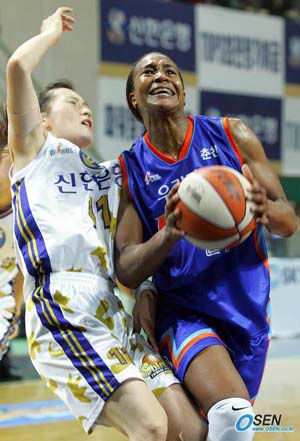 춘천 우리은행이 2006 금호 아시아나배 여자 프로농구 겨울리그 정규리그 우승을 거머쥔 데는 '우승 청부사' 타미카 캐칭을 빼놓을 수가 없다. 개인 사정으로 1라운드에서 뛰지 못하고 2라운드부터 기용된 캐칭은 미국 프로농구 올스타전 행사 참가로 인해 5라운드 1경기를 빠지는 등 총 14경기에 출장, 평균 26.3득점과 14.7개의 리바운드를 기록했다. 캐칭의 이같은 활약은 선수단 전체에 시너지 효과를 불러왔다. 실제로 박명수 감독은 "캐칭이 들어오고나서 공격과 수비가 모두 강해져 정규리그 우승을 차지할 수 있었다"며 "선수단 전체가 자신감을 갖고 공격의 루트가 다양해졌다"고 밝혔다. 특히 캐칭은 지난 10일 천안 국민은행과의 경기에서 20득점, 13리바운드, 11스틸을 기록하며 광주 신세계의 앨라나 모니크 비어드에 이어 두 번째로 트리플 더블을 달성하기도 했다. 특히 스틸로써 트리플 더블을 기록한 것은 캐칭이 처음. 이로 인해 1라운드에서 1승 4패로 최하위로 떨어졌던 우리은행은 2라운드 첫 경기부터 지난 13일 열린 구리 금호생명과의 경기에서 지기 전까지 12연승을 거두며 단숨에 선두로 치고 올라갔다. 캐칭이 이같은 활약을 거둔 것은 어제 오늘의 일이 아니다. 2003 겨울리그에서 이미 우리은행을 정상으로 이끌었던 캐칭은 2003 여름리그에서는 포스트시즌에서만 뛰며 역시 우리은행을 2연패로 이끌었다. 두차례나 우리은행을 챔피언으로 이끈 캐칭은 모두 챔피언 결정전 최우수 선수가 돼 우승 청부사란 별명이 아깝지 않았다. 우리은행은 오는 24일부터 금호생명과 3전 2선승제의 4강 플레이오프를 치른다. 비록 정규리그에서 금호생명에 2패를 당하긴 했지만 공교롭게도 모두 캐칭이 없었을 때여서 우리은행은 다시 한번 챔피언결정전에 오를 수 있다는 자신감에 가득차있다. 한편 캐칭은 "아테네 올림픽 출전 등으로 2년동안 한국에 다시 오지 못했지만 언제나 마음은 우리은행에 있었고 그래서 다시 돌아왔다"며 "한국 복귀무대에서 우리은행을 정규리그 우승으로 이끌게 되어 기쁘고 우리은행을 다시 한번 챔피언으로 이끌고 싶다"는 각오를 밝혔다. 안산=글, 박상현 기자 tankpark@osen.co.kr 사진, 주지영 기자 jj0jj0@osen.co.kr [Copyright ⓒ 한국 최고의 스포츠 엔터테인먼트 전문 미디어 OSEN(www.osen.co.kr) 무단전재 및 재배포 금지]