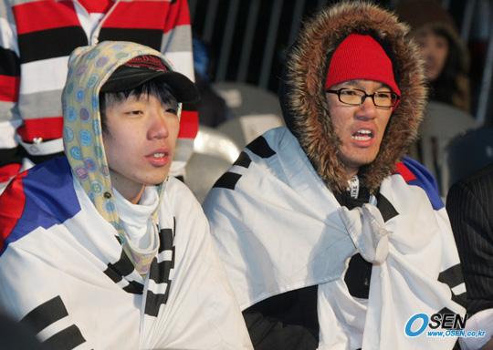 22일 저녁 청계광장에서 2007 아시안컵 2차 예선 한국의 첫 경기인 시리아전 길거리 응원이 펼쳐졌다. 주초보다 쌀쌀해진 날시 탓에 시민들이 태극기로 몸을 감싼 채 대형 전광판을 통해 관전하고 있다./박영태 기자 ds3fan@osen.co.kr [Copyright ⓒ 한국 최고의 스포츠 엔터테인먼트 전문 미디어 OSEN(www.osen.co.kr) 무단전재 및 재배포 금지]