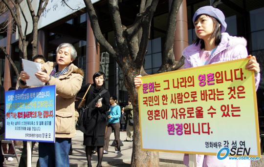 23일 광화문 교보빌딩 앞에서 영화배우 강성연과 영화평론가협회 양윤모 회장이 스크린쿼터 반대1인 시위를 벌였다. 양윤모 회장이 노무현 대통령께 드리는 편지를 읽고 있다./주지영 기자 jj0jj0@osen.co.kr [Copyright ⓒ 한국 최고의 스포츠 엔터테인먼트 전문 미디어 OSEN(www.osen.co.kr) 제보및 보도자료 osenstar@osen.co.kr 무단전재 및 재배포 금지]