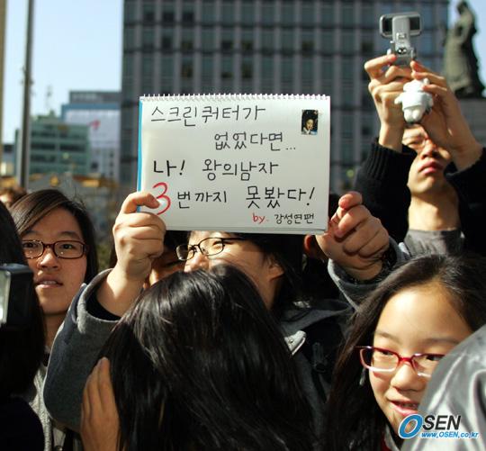 23일 광화문 교보빌딩 앞에서 영화배우 강성연이 벌인 스크린쿼터 반대 1인시위 도중 한 영화팬이 '스크린 쿼터가 없었다면 나! 왕의남자 3번 못봤다'는 글귀를 들고 응원하고 있다. /주지영 기자 jj0jj0@osen.co.kr [Copyright ⓒ 한국 최고의 스포츠 엔터테인먼트 전문 미디어 OSEN(www.osen.co.kr) 제보및 보도자료 osenstar@osen.co.kr 무단전재 및 재배포 금지]