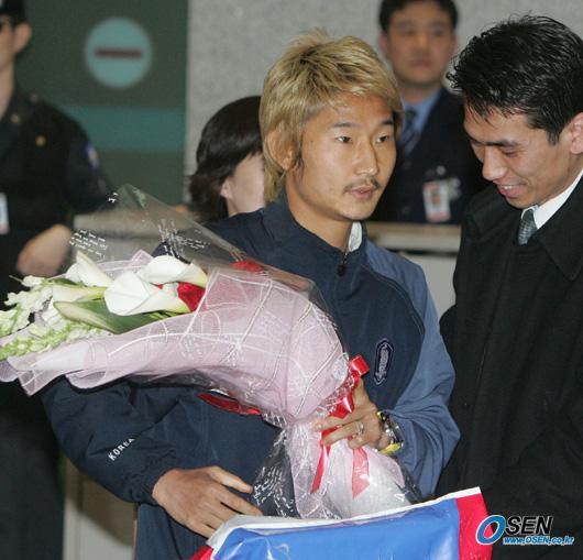 지난 1월 16일 새벽 해외 전지훈련에 나섰던 국가대표 축구팀이 시리아와의 아시안컵 2차예선 첫 경기까지 40일간의 긴 원정을 마치고 24일 오후 인천공항을 통해 귀국했다. 이천수가 환영 꽃다발을 받아 들고 이동하고 있다./인천공항=손용호 기자 spjj@osen.co.kr [Copyright ⓒ 한국 최고의 스포츠 엔터테인먼트 전문 미디어 OSEN(www.osen.co.kr) 무단전재 및 재배포 금지]