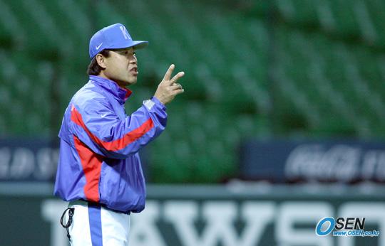 25일 일본 후쿠오카 야후돔에서 열린 2006 WBC 한국대표팀과 롯데 자이언츠의 연습경기 후 김재박 코치가 구장 관리인에게 20분 정도만 타격 연습을 하겠다고 이야기하고 있다./후쿠오카=박영태 기자 ds3fan@osen.co.kr [Copyright ⓒ 한국 최고의 스포츠 엔터테인먼트 전문 미디어 OSEN(www.osen.co.kr) 무단전재 및 재배포 금지]