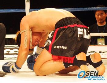 지난해 11월 5일 서울 잠실 올림픽공원 제1체육관(체조경기장)에서 열린 K-1 코리아 맥스 2005에서 일본의 강호 긴지를 상대로 두차례 다운을 뺏은 끝에 KO승을 거두고 당당히 8강에 올랐던 '외팔 파이터' 최재식. 한팔이 없는 장애를 딛고 '인간 승리의 드라마'를 쓴 최재식은 25일 부산 벡스코 특설링에서 열린 K-1 파이팅 네트워크 KHAN 2006 in 부산 대회 8강전에 나섰지만 아쉽게 이수환에게 무너지며 4강 진출에 실패하고 말았다. 6살 때 소 여물을 혼합하고 분쇄하는 기계에 오른손이 빨려들어가 잘리는 바람에 오른쪽 팔꿈치만 남아있는 최재식은 이 때문에 글러브도 팔꿈치에 끼고 경기에 임하곤 한다. 하지만 이런 장애를 딛고 일어선 최재식은 '히트맨'이라는 별명이 있을 정도로 KO 승률이 높은 편. "자신만의 기술이 있다"며 이번 대회에 거는 기대와 희망은 그 어느때보다 컸던 최재식이었지만 이수환이라는 큰 산을 결국 넘어서지는 못했다. 이수환은 지난해 11월 코리아 맥스 대회에서 리투아니아의 레미기우스 볼케비셔스와 슈퍼 파이트 매치에서 2라운드 KO패를 당했지만 임치빈과 함께 이번 대회 8강에 직행한 강호. 이수환과 대결하게 된 최재식은 하루에 8시간이 넘은 강훈으로 다시 한번 인간승리를 일궈내겠다고 별렀지만 오른팔이 없는 그의 약점이 패인으로 다가왔다. 오른팔로 커버를 할 수가 없는 최재식이 왼손잡이로 왼손 펀치가 주무기인 이수환의 공격을 막기는 애시당초 무리였던 것. 결국 최재식은 1라운드 초반에 이수환의 왼손 스트레이트 펀치를 맞고 주저앉으며 한동안 일어서지 못했지만 경기가 끝난 뒤 다시 일어서 4천500명 관중들의 열화와 같은 박수를 받았다. 최재식은 언제나 불가능을 깨 보이겠다는 각오로 링에 오른다고 한다. 일단 도전은 8강에서 멈췄지만 최재식이 다시 한번 링에 우뚝 설 날을 기대해본다. 부산=박상현 기자 tankpark@osen.co.kr/사진=주지영기자jj0jj0@osen.co.kr [Copyright ⓒ 한국 최고의 스포츠 엔터테인먼트 전문 미디어 OSEN(www.osen.co.kr) 무단전재 및 재배포 금지]