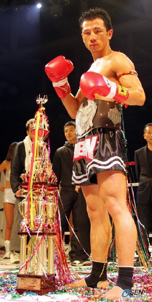 부산 벡스코 특설링에서 25일 열린 K-1 파이팅 네트워크 KHAN 2006 in 부산 대회에서 이수환을 물리치고 초대 챔피언에 오르며 월드 맥스 2006 출전권을 따낸 '치우천황' 임치빈이 누구와 붙어도 멋진 경기를 펼치겠다는 자신감을 드러냈다. 임치빈은 경기가 끝난 뒤 가진 인터뷰에서 "K-1 월드 맥스 2006의 출전권을 따내 기쁘다. 누구와 붙어도 자신있고 멋진 경기를 펼쳐보이겠다"며 "하지만 출전하는 선수 모두가 훌륭하기 때문에 특별히 붙고 싶은 상대는 없다"고 말했다. 임치빈은 이날 챔피언에 오르면서 오는 4월 5일 일본 도쿄의 요요기 국립경기장 제1체육관에서 열리는 K-1 월드 맥스 2006 출전티켓을 획득했다. 이날 경기에서 8강전과 4강전을 판정으로 이기고 올라온 임치빈은 "아무래도 몸이 덜 풀렸던 최종윤과의 8강전 첫 경기가 가장 힘들었던 것 같다"며 "하지만 상대에게 주먹을 맞으면서 오히려 몸이 풀렸고 갈수록 경기 내용이 좋아졌다"고 밝혔다. 결승전에서 맞붙은 이수환이 8강전과 4강전을 모두 1라운드 KO승을 거두고 올라와 체력적인 부담을 느끼지 않았느냐는 질문에 임치빈은 "염두에 두긴 했지만 체력적인 문제 같은 것은 느껴본 적이 없다. 지금도 더 라운드를 뛸 수 있다"며 웃어보인 뒤 "오히려 토너먼트 경기다보니 부상에 따른 위험부담이 있었다. 특히 4강전에서 버팅이 나 출혈이 났을 때 걱정했는데 다행히도 깊지 않았고 꿰멘 부위가 다시 터지지 않아서 다행이었다"고 말했다. 이어 이수환 선수에 대해 "신장과 리치가 길어 체격적인 면에서 훌륭한 선수"라며 "조금만 더 다듬으면 한국은 물론이고 세계적으로도 대성할 선수"라고 칭찬을 아끼지 않았다. 한편 이수환은 "2라운드까지 경기를 잘 이끌다보니 욕심이 컸고 큰 것만 노리다가 당하고 말았다"며 "아직도 경기 운영같은 것을 더 배워야겠다는 생각이 들었다"고 말해 완패를 인정했다. 부산=글, 박상현 기자 tankpark@osen.co.kr 사진, 주지영 기자 jj0jj0@osen.co.kr [Copyright ⓒ 한국 최고의 스포츠 엔터테인먼트 전문 미디어 OSEN(www.osen.co.kr) 무단전재 및 재배포 금지]