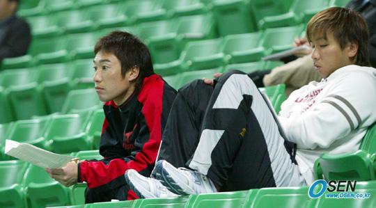 26일 일본 후쿠오카 야후돔에서 벌어진 한국 WBC 대표팀과 롯데 자이언츠의 연습 경기를 한국전 선발로 예상되는 일본의 와타나베(왼쪽)가 동료와 함께 관전하고 있다./후쿠오카=박영태 기자 ds3fan@osen.co.kr [Copyright ⓒ 한국 최고의 스포츠 엔터테인먼트 전문 미디어 OSEN(www.osen.co.kr) 무단전재 및 재배포 금지]