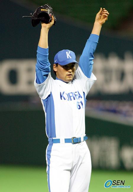 26일 일본 후쿠오카의 야후돔에서 벌어진 한국 WBC 대표팀과 롯데 자이언츠의 연습 경기에 대표팀 선발 투수로 등판한 박찬호가 게임 시작에 앞서 두 손을 들어 몸을 풀고 있다./후쿠오카=박영태 기자 ds3fan@osen.co.kr [Copyright ⓒ 한국 최고의 스포츠 엔터테인먼트 전문 미디어 OSEN(www.osen.co.kr) 무단전재 및 재배포 금지]