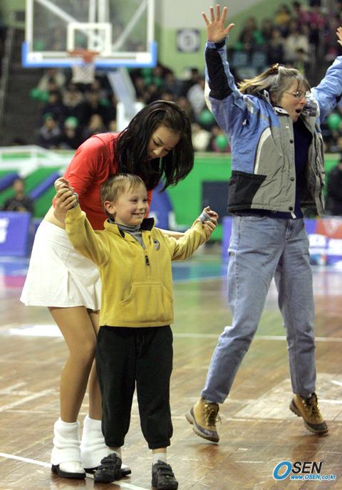 26일 잠실학생체육관에서 벌어진 2005~2006 KCC 프로농구 서울 SK와 원주 동부의 경기 3쿼터 작전타임 때 치어리더가 경기를 관전하던 외국인 가족과 함께 노래 'YMCA' 에 맞춰 춤을 추고 있다./잠실학생체=손용호 기자 spjj@osen.co.kr [Copyright ⓒ 한국 최고의 스포츠 엔터테인먼트 전문 미디어 OSEN(www.osen.co.kr) 무단전재 및 재배포 금지]