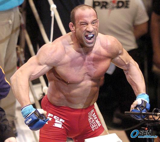 일본 사이타마 슈퍼어리나에서 26일 열린 프라이드 FC 31 제8경기서 쇼군에 기권승을 거둔 마크 콜먼이 링위에 올라 환호하고 있다. 쇼군은 마크 콜먼의 태클 공격때 오른손을 잘 못 짚어 팔이 완전히 꺽이는 부상을 당했다/사이타마=송석린기자 song@osen.co.kr [Copyright ⓒ 한국 최고의 스포츠 엔터테인먼트 전문 미디어 OSEN(www.osen.co.kr) 무단전재 및 재배포 금지]