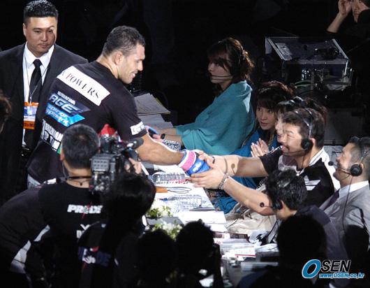 26일 일본 사이타마 슈퍼아레나에서 열린 종합격투기 '프라이드FC 31' 제7경기 안토니오 호드리고 노게이라가 타무라 키요시를 암바로 가볍게 승리한후 요시다 히데히코와 악수를 나누고 있다. /사이타마=송석린기자song@osen.co.kr [Copyright ⓒ 한국 최고의 스포츠 엔터테인먼트 전문 미디어 OSEN(www.osen.co.kr) 무단전재 및 재배포 금지]