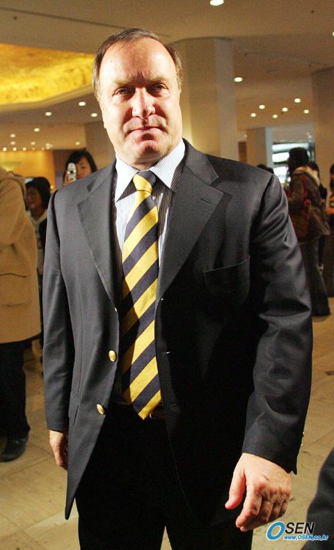 국가대표 축구팀이 27일 낮 서울 홍은동 그랜드 힐튼 호텔로 소집됐다. 이에 앞서 월드컵 진품 트로피 공개 행사에 참석한 딕 아드보카트 감독이 호텔 로비로 걸어 들어오고 있다./주지영 기자 jj0jj0@osen.co.kr [Copyright ⓒ 한국 최고의 스포츠 엔터테인먼트 전문 미디어 OSEN(www.osen.co.kr) 무단전재 및 재배포 금지]