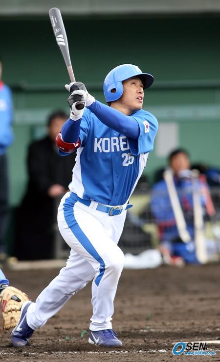 27일 일본 후쿠오카 간노스구장에서 열린 2006 WBC 한국대표팀 자체 청백전에서 이승엽이 3회 박명환으로 부터 우중월 3점 홈런을 날린 후 타구의 궤적을 보고 있다./후쿠오카=박영태기자 ds3fan@osen.co.kr [Copyright ⓒ 한국 최고의 스포츠 엔터테인먼트 전문 미디어 OSEN(www.osen.co.kr) 무단전재 및 재배포 금지]