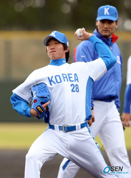 27일 일본 후쿠오카의 간노스구장에서 2006 WBC 한국대표팀의 자체 청백전이 열렸다. 경기 전 투수들의 연습 때 박찬호가 전병두의 투구 모습을 뒤에서 바라보고 있다./후쿠오카=박영태 기자 ds3fan@osen.co.kr [Copyright ⓒ 한국 최고의 스포츠 엔터테인먼트 전문 미디어 OSEN(www.osen.co.kr) 무단전재 및 재배포 금지]
