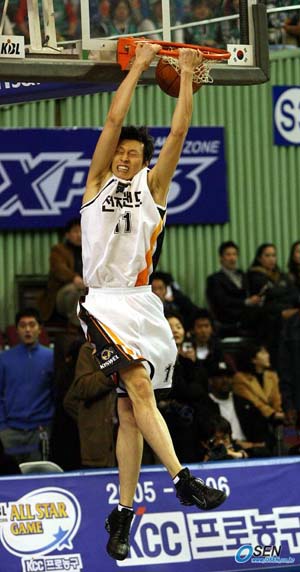 비록 정규리그에서는 최하위를 달리고 있는 인천 전자랜드이지만 덩크슛 컨테스트에서는 모두 우승자를 배출했다. 전자랜드의 석명준과 안드레 브라운은 28일 서울 잠실체육관에서 열린 2005~2006 KCC 프로농구 올스타전 하프타임에 가진 덩크슛 컨테스트에서 각각 원주 동부의 김주성과 서울 SK의 데이먼 브라운을 제치고 우승을 차지했다. 지난 2004~2005 올스타전 덩크슛 컨테스트에서 부산 KTF 소속으로 출전해 우승했던 석명준은 2시즌 연속 덩크왕에 오르며 지난 98~99 시즌과 99~2000 시즌 올스타전 덩크왕에 올랐던 워렌 로즈그린에 이어 두번째로 2시즌 연속 덩크왕에 올랐다. 재미있는 것은 로즈그린도 첫 우승때는 KTF의 전신인 광주 나산 소속이었고 2연패를 했을 당시에는 전자랜드의 전신인 인천 신세기 소속이었다는 점. 또 안드레 브라운은 만점에 가까운 덩크 묘기로 제 실력을 보여주지 못한 데이먼 브라운에 압승을 거뒀다. 한편 3점슛 컨테스트에서는 창원 LG의 조우현이 서울 삼성 이규섭에 20-12로 승리, 3점슛 왕에 올랐다. 조우현은 1차전에서 울산 모비스의 우지원에 8-2로 승리한 뒤 2차전에서는 대구 오리온스 김병철과 기권을 한 SK의 방성윤을 제치고 올라온 박규현을 12-4로 크게 이기고 결승에 올랐다. 반면 이규섭은 전주 KCC의 추승균을 연장전에서 이기고 올라 온 뒤 동부의 양경민을 제치고 결승에서 조우현과 맞섰지만 아쉽게 준우승에 머물렀다. 잠실체=글, 박상현 기자 tankpark@osen.co.kr 사진, 박영태 기자 ds3fan@osen.co.kr 석명준 [Copyright ⓒ 한국 최고의 스포츠 엔터테인먼트 전문 미디어 OSEN(www.osen.co.kr) 무단전재 및 재배포 금지]