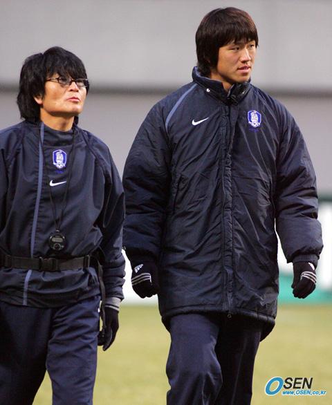국가대표팀이 앙골라전을 하루 앞두고 28일 저녁 서울 상암 월드컵경기장에서 훈련을 실시했다. 부상으로 앙골라전에 결장하게 된 이호가 최주영 의무팀장과 함께 회복 훈련을 하며 동료들의 훈련 모습을 바라보고 있다./상암=주지영 기자 jj0jj0@osen.co.kr [Copyright ⓒ 한국 최고의 스포츠 엔터테인먼트 전문 미디어 OSEN(www.osen.co.kr) 무단전재 및 재배포 금지]