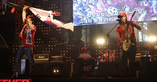 2006 독일 월드컵에서 응원가 ‘승리를 위하여’를 부르며 국민적인 밴드로 급부상한 트랜스픽션이 대한민국 축구 서포터스인 붉은 악마에 고마움을 표시했다. 트랜스픽션은 이번 독일 월드컵에서 붉은 악마가 배출한 스타임이 틀림없기 때문이다. 우연한 기회에 ‘승리를 위하여’에 참여한 트랜스픽션은 홍보나 별다른 프로모션 없이 오직 붉은 악마의 응원으로 자신들의 노래 ‘승리를 위하여’를 알렸다. 월드컵이 열리기 전 국가대표 평가전 세네갈전부터 입에서 입으로 불려지기 시작한 ‘승리를 위하여’는 월드컵 본선 토고전부터는 붉은 악마의 메인 응원가로 불려졌다. 트랜스픽션은 16강을 향한 경기가 열릴 때마다 광화문, 상암, 잠실 등을 오가며 바쁜 일정을 소화해야했고 스위스전이 열린 6월 24일 새벽에는 광화문에서 20만 명이 넘는 응원인파들과 함께 부르기도 했다. 트랜스픽션의 보컬 해랑은 “밴드를 구성하고 지금까지 이렇게 가슴 뭉클한 무대를 경험해 본적이 없다”며 자신들의 노래 ‘승리를 위하여’를 월드컵 메인 응원가로 선택해준 붉은 악마에게 고마움을 표시하며 "공연에 붉은 악마를 초대하고 싶다"는 의사를 밝혔다. bright@osen.co.kr K-Family 엔터테인먼트.