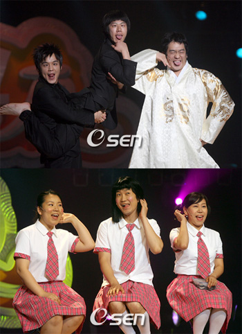 그동안 고전을 면치 못했던 MBC 개그가 확 달라졌다. ‘MBC 개그=꽁트’라는 고정관념을 버리고 젊은 시청자들에게 호응을 얻을 수 있게 변한 것. 7월 3일 밤 11시에 방송된 ‘개그夜(야)’(이하 ‘개그야’)가 그렇다. ‘개그야’는 기존의 ‘뮤직스토커’ ‘한류 최고의 토크쇼’ ‘내사랑 나타샤’를 제외한 모든 코너를 없앴다. 새로운 멤버를 영입해 젊은 감각으로 무장한 새로운 코너를 선보였다. 특히 김미려와 김철민이 호흡을 맞춘 ‘사모님’과 김한배 이종호 이준 이문원 윤치연 김진규가 선보인 ‘수습해’는 시청자들의 호평을 받았다. 뿐만 아니라 ‘누나의 꿈’ ‘어머 정말’은 기존의 개그프로그램에서 볼 수 없었던 소도구를 통해 신선한 느낌을 더했다. 또 ‘친아빠와 더치페이’는 방청객과 함께하는 모습으로 거리감을 좁혔다. 2006 독일월드컵 때문에 3주동안 방송되지 않았던 ‘개그야’는 3일부터 매주 월요일 밤 11시로 방송시간을 변경했다. 주간시트콤 ‘안녕, 프란체스카’ ‘소울메이트’가 방송됐던 월요일 밤 11시에 옮긴 이유는 SBS, KBS 2TV 개그프로그램과 본격적인 경쟁구도를 만들기 위한 편성전략이다. MBC 한 관계자는 “그동안 MBC 개그프로그램이 타 방송사 개그프로그램 사이에 끼어있는 형국이었다면 시간대를 옮겨 ‘MBC 개그가 달라졌다’는 것을 확실하게 보여줄 것이다”고 밝혔다. ‘개그야’ 방송시간 변경이 순조로울지는 아직 미지수다. ‘안녕, 프란체스카’와 ‘소울메이트’ 등 MBC 주간시트콤도 마니아 시청자들의 전폭적인 사랑을 받았지만 SBS ‘야심만만’에 가려 제대로 빛을 발하지 못했기 때문. 최근 일부 시청자들이 ‘야심만만’이 식상해졌다고 평가하고 있지만 연예인들의 사생활과 폭탄발언으로 무장한 ‘야심만만’은 여전히 시청자들의 구미를 당긴다. 분명 MBC의 개그는 달라졌다. 하지만 그 달라진 모습이 시청자들의 흥미를 끌고 인기를 얻기에는 약간의 시간이 필요하다. 방송시간을 옮겨 새로운 모습으로 변모한 ‘개그야’가 MBC 개그를 살려낼지 귀추가 주목된다. pharos@osen.co.kr 7월 3일 방송된 ‘개그야’에서 새롭게 선보인 ‘수습해’(사진 위)와 ‘어머 정말’.