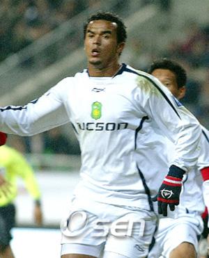 전북 현대가 2년만에 울산 현대를 제압하고 본격적인 순위 다툼에 합류했다. 전북은 5일 울산 문수 월드컵 경기장에서 열린 삼성 하우젠컵 2006 대회 7차전에서 후반 42분에 터진 제칼로의 결승골에 힘입어 울산을 1-0으로 꺾었다. 이로써 전북은 4승 3패, 승점 12가 되며 성남 일화에 골득실에서 앞서 9위에서 6위로 뛰어올랐고 울산은 그대로 4위에 머물렀다. 강한 압박으로 경기를 이끌어간 울산과 '선 수비, 후 역습' 작전으로 맞선 전북은 막판이 다 되어가도록 골이 터지지 않아 그대로 무승부로 끝나는 듯했다. 하지만 경기 종료 3분 여를 남겨놓고 전북의 정종관이 아크 앞에서 돌파를 시도할 때 수비수의 발을 맞고 아크 정면에 있던 염기훈에게 흘렀고 염기훈이 이 공을 그대로 제칼로에게 연결했다. 페널티 지역 정면에서 이 공을 받은 제칼로는 지체없이 오른발로 슈팅, 울산의 골문을 흔들었다. 일격을 받은 울산은 후반 시작과 함께 교체 투입된 이천수와 최성국 등을 앞세워 총공세에 나섰지만 동점골을 기록하지 못한 채 홈에서 안타까운 패배를 당하고 말았다. 이날 문수 월드컵 경기장에는 불과 4278명의 관중이 입장, 월드컵 열기를 국내 프로축구 재개 첫 날에 이어가지 못했다. ■ 5일 전적 △ 울산 울산 0 (0-0 0-1) 1 전북 ▲ 득점 = 제칼로 3호(후42, 도움 염기훈·전북) tankpark@osen.co.kr 제칼로.