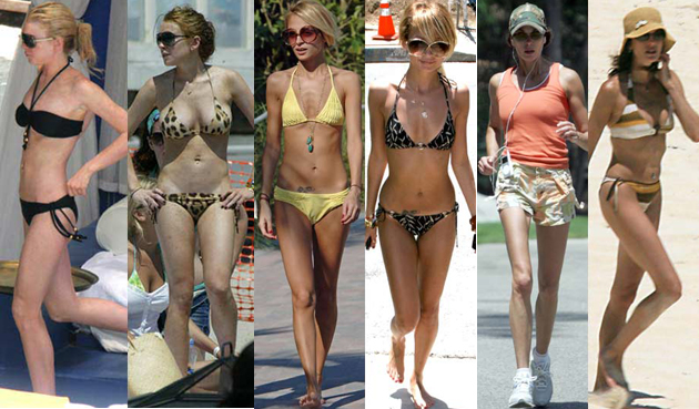 [OSEN=손남원 영화전문기자]할리우드 스타들의 다이어트가 도를 지나치고 있다. 글래머 스타일의 여배우를 스크린에서 구경하기 힘들어진건 이미 오래전 일. 그나마 스칼렛 요한센 정도가 풍만한 자연미를 뽐내고 있을 정도다. 할리우드의 연예주간지 'Us' 최신호는 날씬한 몸매를 떠나서 볼품없이 깡마른 체격으로 변해가는 스타 3명의 '어제와 오늘'을 소개했다. 첫번째 주인공은 린제이 로한. '프리키 프라이데이' 등 10대 시절 영화에서 통통하고 귀여운 용모로 인기를 모았던 로한은 지난해 철저한 다이어트로 날씬 미인(왼쪽) 대열에 합류했다. 그러나 올들어 그리스 해운 재벌의 아들, 영국 출신의 록가수 등 남자 친구를 숱하게 바꿔가며 해변 등에서 노출된 사진을 보면 살이 더 빠진 모습을 볼수 있다. 패리스 힐튼의 절친한 친구였다가 결별한 니콜 리치도 가슴에 뼈가 드러나 보이는 수준(가운데)으로 변했다. 예전의 아담한 미모는 찾을길 없이 보기 흉한 모습으로 변한 그녀는 다이어트용 단백질 바 등으로 대부분 끼니를 때우는 것으로 알려졌다. 인기 TV 시리즈 '위기의 주부들'에 출연중인 테리 해처는 중년의 나이에 새다리(오른쪽)로 변신했다. 한때 할리우드의 섹시 스타로 해변가를 누비던 모습은 간데 없고, 오로지 '살을 뺀다'는 지상 과제에만 매달려 있다는 소식이다. mcgwire@osen.co.kr 'Us' 제공