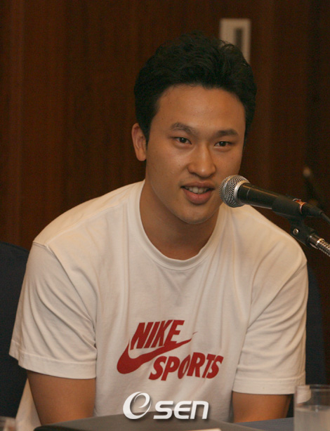 90년대를 풍미했던 전 NBA 스타 클라이드 드렉슬러가 오는 8월 서울서 열릴 월드바스켓볼 챌린지 대회 홍보를 위해 지난 9일 내한, 10일 오후 서울 삼성동 그랜드 인터콘티넨탈 호텔에서 기자회견을 가졌다. 한국 대표팀의 김승현이 이번 대회는 아시안게임에 대비한 준비 과정인 만큼 열심히 배우겠다는 각오를 말하고 있다./김영민 기자 ajyoung@osen.co.kr