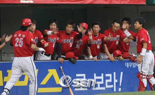 KIA가 시즌 첫 선발 전원 안타를 기록하며 LG를 대파했다. 48일만에 등판한 KIA 우완 김진우는 2이닝을 무실점으로 막았다. KIA의 새로운 외국인 타자 스캇은 데뷔전에서 4타수 1안타 1타점을 기록했다. KIA는 12일 광주 LG전에서 모처럼 장단 14안타를 터트리는 화끈한 타격과 선발 그레이싱어의 호투를 앞세워 12-1로 대승을 거두었다. KIA는 2연승을 거두고 31승34패(3무)를 기록했다. LG는 시즌 42패째(27승3무)를 당했다. 승부는 4회에 결정났다. 1-1로 팽팽하던 4회말 공격에서 KIA는 2사 1,2루에서 이현곤의 좌익수 옆으로 빠지는 2루타를 한 점을 뽑고 김상훈이 중전적시타로 두 점을 보태 4-1로 승기를 잡았다. 5회말 김종국의 시즌 1호 좌월홈런과 6회 이용규의 우중간 3루타로 한 점을 보태 6-1. 이미 승부가 끝난 가운데 KIA는 7회말 공격에서 2루타 2방 포함 5안타와 볼넷 2개를 묶어 대거 6득점, 점수차를 12-1까지 벌렸다. KIA 선발 그레이싱어는 7이닝 4안타 1실점 호투로 시즌 6승째(9패)를 수확했다. LG 선발 정재복이 5이닝 8안타 5실점의 부진으로 시즌 5패째(5승)를 당했다. KIA의 새로운 외국인타자 스캇 시볼은 좌익수플라이, 좌익수플라이, 삼진에 이어 7회 좌전 적시타로 타점을 올리며 데뷔전을 무난히 마쳤다. 부상으로 두 달 가까이 공백기를 보낸 KIA 우완 김진우는 8회초부터 등판해 152km짜리 직구를 뿌리며 2이닝을 1볼넷 무안타 무실점으로 막았다. 이날 김진우는 지난 5월 25일 롯데전 이후 48일만에 등판이었다. ■게임노트 ◆…양승호 LG 감독대행은 경기 후“KIA 타자들이 잘 쳤다. 몇 경기째 타선이 안터져 고민이다. 맞는 것도 경험이라고 생각해서 신재웅을 계속 마운드에서 던지게 했다”고 말했다. 서정환 KIA 감독은 "스캇의 합류로 팀 타선의 중량감이 느껴지고 스캇이 한국야구에 잘 적응할 것 같다는 생각이 든다"고 말했다. ◆…"우와! 멀리 나간다” KIA 새 외국인 스캇이 2회말 첫 타석에서 펜스 앞에서 잡히는 깊숙한 플라이를 날리자 관중들이 많은 박수를 보내는 풍경을 연출했다. 한 구단 직원은 “그동안 얼마나 멀리 나가는 타구들이 나오지 않아 모처럼 큰 타구에 관중들이 박수를 치는 것 같다”며 웃기도 했다. ◆…LG의 새로운 에이스로 떠오른 심수창이 장미와 케이크를 받고 얼굴이 환해졌다. 지난 9일 25번째 생일이었던 심수창을 위해 광주의 팬클럽 멤버 10여 명이 찾아와 장미 25송이와 케이크 2개를 선물했던 것. 심수창은 곱상한 외모와 올들어 기량이 부쩍 좋아져 팀 내 안팎에서 인기를 모으고 있다. sunny@osen.co.kr