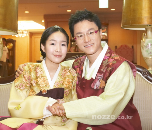 예비부부 김학도(35)-박은애(25) 씨가 7월 14일 서울 강남구 논현동 임피리얼 팰리스에서 진행된 결혼발표 기자회견에서 “아기를 낳으면 꼭 성대모사 조기교육을 시키겠다”고 다짐했다. 예비신부 박은애씨가 먼저 “아기를 낳으면 빨리 성대모사를 시켜 아빠의 뒤를 잇겠다”고 말하자 김학도도 기다리고 있었다는 듯 “조기교육을 시키겠다”며 “동물 성대모사부터 시작할 것”이라고 밝혀 웃음꽃을 피웠다. 이날 기자회견에서 김학도는 성대모사의 달인답게 감우성 박신양 앙드레김 김국진 김흥국 조용필 전인권 등 많은 유명연예인의 성대모사로 결혼을 자축했다. 스스로 “인터뷰나 기자회견이 아니라 성대모사 쇼를 하는 것 같다”고 말했을 정도. 박은애 씨는 많은 성대모사 중에서도 김학도가 god의 ‘어머님께’를 부르는 김국진 성대모사가 가장 마음에 든다고 말했다. 예비신부의 칭찬에 김학도는 즉석에서 김국진 성대모사를 선보이기도 했다. 또 예비신부 박은애 씨도 성대모사 요청을 받았으나 김학도가 신부를 아끼는 마음에 “내가 대신 망가지겠으니 신부에게 성대모사는 시키지 말아 달라”고 간청해 시도에만 그쳤다. 이어 김학도-박은애 커플은 “나라의 출산정책에 따라 최소한 셋은 낳을 생각이라며 낳아보고 적성에 맞다 싶으면 4~5명 정도 낳겠다”고 말해 주위를 깜짝 놀라게 했다. 탤런트 정한용의 소개로 10년이라는 나이 차이를 극복하고 교제해온 김학도-박은애 커플은 만난지 1년째 되는 날인 9월 30일 논현동 임피리얼 호텔에서 백년가약을 맺는다. 사회는 절친한 동료 개그맨 박명수가, 주례는 동명인 박명수 전 중앙대 총장이 맡는다. 두 사람은 김학도가 현재 살고 있는 집에서 신접살림을 꾸릴 것으로 알려졌다. orialdo@osen.co.kr 결혼 기자회견 중 김학도-박은애씨 커플. /웨딩컨설팅 업체 '노체'(nozze) 제공.