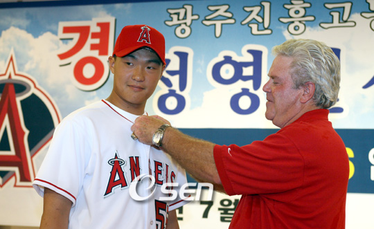 최근 정영일(18.진흥고)을 100만 달러에 영입한 LA 에인절스가 한국에서의 높은 관심에 놀라움을 표명했다. 간판 타자인 블라디미르 게레로의 입단식과 비교해 더 성대했다는 것이다. 지난 9일 광주에서 열린 입단 조인식에 참가한 에디 베인 스카우트팀장은 16일(한국시간) 'LA 타임스'와의 인터뷰에서 "쉴 새 없이 카메라 플래시가 터졌다. 마치 영화배우 할리 베리가 나타난 것만 같았다"고 말했다. 또 "우리가 블라드(게레로)를 영입했을 때 가진 기자회견도 이에는 못미쳤다"고 말해 한국에서의 열기를 매우 고무적으로 받아들였다. 'LA 타임스'는 당시 조인식에 사진 기자 15명 등 무려 150명의 취재진이 북새통을 이뤘다고 전했다. 한편 취업비자 문제로 올 가을 정규 마이너리그가 아닌 교육리그에 참가하는 정영일은 내년 초 에인절스 산하 마이너리그에서 본격적인 미국 프로야구 경험을 쌓는다. 빅리그 구단은 산하 마이너리그에 약 20명 정도 외국인 선수를 고용할 수 있는데 에인절스의 경우 이에 필요한 취업비자가 올해 모두 소진된 것으로 알려졌다. 따라서 정영일은 로스터가 새로 변동되는 내년에 새로운 취업비자를 발급받을 예정이다. 이밖에 '아시아 마케팅'을 공개적으로 선언한 에인절스는 이승엽(30.요미우리)의 동료인 우완 우에하라 고지에게도 남다른 관심을 나타내고 있다. 정영일 계약을 위해 한국을 방문했던 스카우트팀이 현재 일본행을 준비 중이다. 에인절스는 지난 1998년 대학생이던 우에하라 영입을 위해 300만 달러를 제시한 바 있다. 당시 우에하라는 이를 거절하고 요미우리에 입단했으나 올 시즌 뒤 빅리그 진출을 갈망하고 있다. 에인절스는 우에하라와 함께 마쓰자카 다이스케(26.세이부)에게도 흥미를 나타내고 있어 귀추가 주목된다. workhorse@osen.co.kr