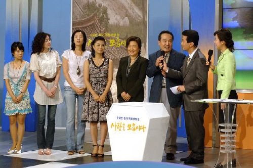 수해민들을 돕기 위한 스타들의 따뜻한 손길이 속속 이어지고 있다. KBS 2TV 주말극 '소문난 칠공주'(문영남 극본, 배경수 연출) 출연진이 7월 19일 오후 1시께 KBS 수재민 돕기 특별 생방송 '사랑을 모읍시다'에 출연해 수해로 재난을 당한 주민들을 위해 성금을 전달했다. 이날 탤런트 박인환 김해숙 김혜선 이태란 최정원 고주원 이승기 박해진은 여의도 KBS본관 공개홀에서 열린 특별 생방송 '사랑을 모읍시다'에 직접 나와 수재민을 위로했다. 이 자리에서 극중 나양팔 역의 박인환은 "비 피해를 당한 수재민을 돕기 위해 '소문난 칠공주' 출연진과 제작진이 작은 정성을 모았다"고 말했다. 이외에도 인기그룹 신화의 김동완과 영화배우 차인표 조재현도 KBS 수재민 돕기 모금방송에 동참했으며 이날 오후 6시 30분께 스튜디오를 찾은 바다는 성금을 전달하고 "수재민 여러분을 위해 열심히 기도하겠다"며 "나 또한 열심히 방송해서 여러분을 위로하겠다"고 따뜻한 마음을 전했다. orialdo@osen.co.kr KBS 제공.