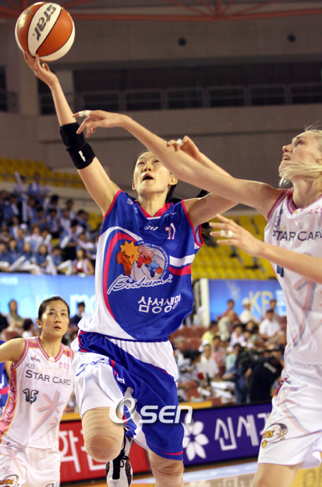 "서울 삼성 우승 현장에서 기를 받고 왔어요". 용인 삼성생명의 포워드 박정은이 5년만에 남자프로농구(KBL) 정상에 오른 삼성의 우승 현장에서 기를 받고 왔다며 남은 경기에서 좋은 성적을 거둬 챔피언에 오르겠다는 각오를 밝혔다. 박정은은 20일 천안 유관순체육관에서 열린 신세계 이마트배 2006 여자프로농구 여름리그 챔피언 결정 1차전에서 천안 KB국민은행을 66-60으로 이긴 뒤 가진 기자회견에서 "삼성이 울산 모비스를 꺾고 우승했을 때 기를 잔뜩 받고 왔다"며 "우리도 포스트시즌 무패로 우승하고 싶다"고 말했다. 서울 삼성은 2005~2006 KCC 프로농구 4강 플레이오프와 챔피언 결정전에서 7연승을 거두며 5년만에 정상에 오른바 있다. 춘천 우리은행과의 4강 플레이오프에서 2연승을 거둔 뒤 포스트시즌 3연승을 기록하고 있는 삼성생명 역시 지난 2001 겨울리그 이후 첫 우승을 노리고 있어 5년 여만에 정상 탈환을 노리고 있다. 이어 박정은은 "오히려 큰 점수차로 이기고 있으면 선수들이 해이해져 실점도 많이 하고 경기를 망치는 경우가 종종 있다"며 "10점차로 앞서고도 오히려 KB국민은행에게 역전을 허용한 것이 끝까지 집중력을 유지할 수 있는 계기가 된 것 같다"고 말했다. 또 변연하와 박정은은 "모두 많은 경기를 치렀기 때문에 체력 고갈은 우리나 KB국민은행이나 마찬가지이며 결국 정신력과 집중력에서 승부가 갈렸다고 생각한다"며 "오늘 경기에서 리바운드 싸움에서 대등하게 가자는데 초점을 맞췄는데 잘 맞아떨어진 것 같다"고 말했다. 실제로 삼성생명은 용병 앤 바우터스의 13개를 비롯 김세롱이 7개, 변연하가 6개, 박정은과 이종애가 5개로 모두 36개의 리바운드를 잡아내 KB국민은행보다 오히려 9개가 앞섰다. 오는 22일과 24일에 2, 3차전이 홈코트인 용인에서 열리는 것에 대해 박정은은 "용인은 우리를 응원해주는 팬들도 많고 홈에 가면 경기가 잘 풀린다"며 "슈팅 성공률 역시 용인에서 치를 때 더 좋은만큼 무패 챔피언 등극도 한 번 노려보겠다"는 각오를 밝혔다. tankpark@osen.co.kr 박정은이 국민은행의 스테파노바를 제치고 골밑을 돌파하고 있다./천안=박영태 기자 ds3fan@osen.co.kr