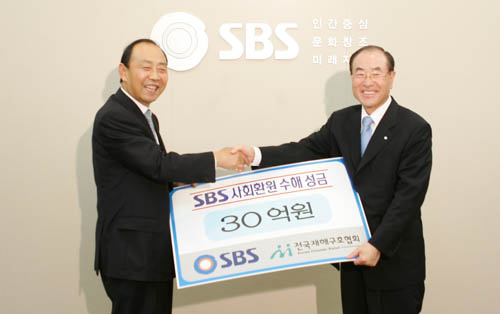 SBS는 7월 20일 서울 양청구 목동 방송센터 20층 대회의실에서 중부지방을 강타한 집중호우로 피해를 입은 수해민들을 돕기 위한 성금 전달식을 갖고 30억 원의 성금을 기탁했다. 30억 원의 성금은 윤세영 회장, 안국정 사장 등 SBS 임직원들이 참가한 가운데 최학래 전국재해구호협회 회장에게 전달됐다. SBS의 이번 성금 기탁은 SBS가 지난해부터 3년간 매년 100억 원씩 총 300억 원을 기탁하는 사회환원 사업의 일환이다. SBS가 기탁한 성금은 수재민을 위한 생필품 지원과 수재민 재해방송 시청 환경 개선 사업 등에 사용될 예정이다. 100c@osen.co.kr SBS 제공.