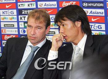 홍명보(37) 코치가 딕 아드보카트 전 감독에 이어 핌 베어벡(51) 신임 감독과도 함께 축구대표팀을 이끌게 됐다. 최근 파주 NFC(국가대표팀트레이닝센터)에서 1급 지도자과정을 마친 홍 코치는 베어벡 감독과 한 배를 타기로 결정을 내렸다. 계약기간은 2008년 8월까지로 2년 간. 홍 코치는 25일 오후 2시 대한축구협회 기자실에서 코치직 수락과 관련해 약식 기자회견을 가질 예정이다. 홍 코치는 지난해 9월 아드보카트호 출범과 함께 대표팀 코치 생활을 시작해 당시 코치였던 베어벡 감독과 독일 월드컵을 치렀다. 홍 코치는 지난 2002년 한일 월드컵을 앞두고 베어벡 감독과 선수와 코치로 인연을 맺었다. 한편 압신 고트비 코치도 이날 홍 코치와 함께 베어벡 감독을 보좌하기로 결정했다고 대한축구협회는 밝혔다. 계약기간은 홍 코치와 동일하다. iam905@osen.co.kr