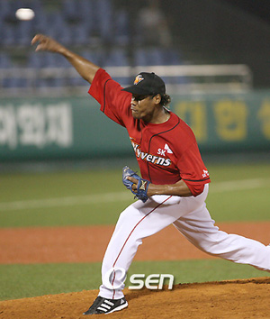 “155km짜리 강속구를 연신 뿌리는데 어떻게 쳐요. 그 볼을 쳐서 이긴 LG가 대단해요”. 후반기 시작하자마자 SK에 2연패를 당한 현대 관계자들은 SK가 전반기 막판에 데려온 새 용병 우완 투수 호세 카브레라(34)의 광속구에 혀를 내둘렀다. 카브레라는 후반기 첫 경기인 지난 25일 경기선 최고구속 155km로 올 시즌 8개 구단 투수 중 가장 빠른 공을 던졌다. 이전 등판서도 154km를 뿌렸지만 이날 문학구장 스피드건에는 155km가 포착된 것이다. 이 구속은 올 시즌 한국야구에서 뛰고 있는 투수 중 가장 빠른 구속이다. 삼성 마무리 투수 오승환이 154km를 문학구장에서 한 차례 찍었을 뿐이다. 한때 158km짜리 광속구를 던져 한국선수 중 가장 빠른 볼을 던진다는 SK의 엄정욱도 어깨 부상 후유증으로 아직은 152km 정도에 그치고 있다. 일부에서는 문학구장 스피드건이 ‘후하다’는 말들도 하지만 카브레라가 올 시즌 8개구단 투수 중 가장 빠른 공을 던진 것은 확실한 사실이다. 이런 가운데 카브레라가 연일 155km 안팎의 광속구를 뿌려대니 상대 타자들은 주눅이 들고 있는 것이다. 카브레라는 26일 경기에도 등판, 최고구속 154km를 기록하며 현대 3타자를 간단히 범타로 처리하며 시즌 3세이브째를 올렸다. 지난 1일 공격에서 그런 대로 제몫을 해주던 피커링을 내보내고 다시 데려온 카브레라가 빛을 발하고 있는 것이다. SK는 카브레라가 광속구를 던지며 마무리 투수로서 안정감을 보이기 시작하자 만면에 미소를 띠며 기뻐하고 있다. 카브레라의 광속구를 앞세운 안정된 마운드로 4강 도약의 발판을 마련한다는 후반기 복안을 실천에 옮길 수 있기 때문이다. 조범현 감독은 현대전서 이틀 연속 역전승을 거둔 후 “투수진이 안정감이 생겼다”며 만족감을 보일 정도로 카브레라의 가세는 SK에 큰 힘이 되고 있다. SK 구단 관계자는 “올해는 구속이 작년보다 더 빨라졌다. 지난해는 잘해야 148~149km 정도밖에 구속이 나오지 않았다. 하지만 올해는 몸이 근육질로 탄탄해진 덕분인지 구속이 더 나오고 있다”며 카브레라가 작년보다 훨씬 더 좋아진 것에 칭찬을 아끼지 않고 있다. 카브레라는 2004년 SK 유니폼을 입은 후 2005년 시즌 도중 손가락 부상 치료를 이유로 고국인 도미니카공화국으로 갔다가 돌아오지 않아 태업 의혹을 사는 등 ‘문제아’이기도 했다. 카브레라는 현재 6게임에 등판해 1패 3세이브, 방어율 1.80을 기록하고 있다. 지난 19일 LG전서 2안타를 맞고 1실점해 패전을 기록한 것이 유일한 패배다. 아직도 컨트롤이 불안하다는 평가를 듣고 있지만 카브레라의 가세로 SK는 불펜진이 두터워져 뒤로 갈수록 힘을 내고 있다. 카브레라를 앞세운 SK의 후반기 대반격이 시작됐다. sun@osen.co.kr