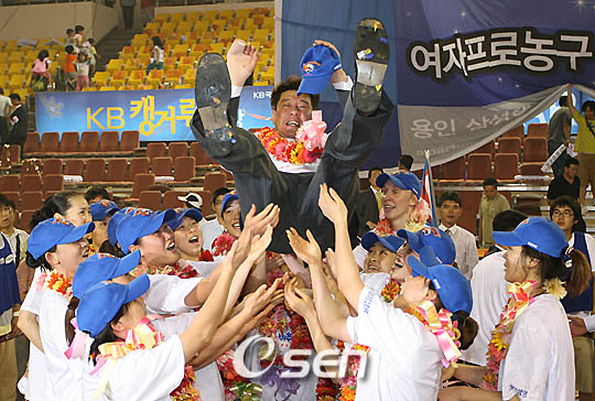 용인 삼성생명이 여자프로농구 역대 최다인 통산 5번째 챔피언에 올랐다. 삼성생명은 27일 천안 유관순체육관에서 열린 신세계 이마트배 2006 여자프로농구 여름리그 챔피언 결정 5차전에서 용병 안 바우터스(20득점, 11리바운드, 2어시스트)와 변연하(18득점, 6리바운드, 3어시스트, 2스틸), 박정은(16득점, 3점슛 2개, 6리바운드, 3어시스트, 3스틸)의 활약으로 정선민(24득점, 4리바운드, 2어시스트, 3스틸)이 홀로 분전한 천안 KB국민은행을 60-52로 꺾었다. 2연승과 2연패로 '롤러 코스터'를 타며 벼랑 끝에 몰렸던 삼성생명은 마지막 5차전에서 웃으며 지난 2001년 춘천 우리은행에 3승 1패로 승리하고 챔피언에 오른 이후 5년 5개월만에 정상에 오르며 통산 5번째 우승의 기쁨을 맛봤다. 그러나 2002 겨울리그 이후 통산 두번째로 챔피언 결정전에 올랐던 KB국민은행은 또다시 2승 3패로 무릎을 꿇으며 여자프로농구 6개 구단 중 유일하게 챔피언 등극의 기쁨을 맛보지 못했다. 한편 챔피언 결정전 최우수선수(MVP)에는 3차전에서 챔피언 결정전 최다기록인 37득점을 올리는 등 삼성생명의 5번째 정상 등극의 '일등 공신'이 된 '바니슈터' 변연하가 선정됐다. 접전 끝에 1쿼터가 15-13, 삼성생명의 2점차 리드로 마무리된 가운데 양팀은 시종일관 롤러 코스터 같은 경기로 모처럼 6000석 규모의 유관순 체육관을 가득 메운 관중들을 열광시켰다. 2쿼터 시작과 함께 바우터스의 연속 3개 2점슛와 이종애(4득점, 7리바운드, 3어시스트, 2블록)의 2점슛으로 삼성생명이 23-13, 10점차로 달아나 초반 기선을 잡는 듯 했지만 KB국민은행은 정선민의 연속 7득점과 김지현(11득점, 3점슛 2개, 2어시스트)의 자유투 2개 성공으로 22-23까지 따라붙었다. KB국민은행은 이에 그치지 않고 22-25로 뒤지던 상황에서 정선민이 연속 2개의 2점슛을 터뜨리며 26-25로 첫 역전에 성공했지만 삼성생명 역시 이에 질세라 바우터스의 연속 2개의 2점슛에 힘입어 1, 2쿼터 전반을 29-26, 3점 앞선채 마쳤다. 양팀이 두번째 롤러 코스터를 경험한 것은 3쿼터 초반부터. 전반 내내 단 1개의 필드슛을 성공시키지 못했던 박정은이 3점포로 포문을 연데 이어 바우터스와 박정은의 2점슛으로 삼성생명이 다시 36-26까지 앞서갔고 정선민의 3점포로 37-31로 쫓기던 5분 11초부터 바우터스의 2점슛과 박정은의 연속 2개 2점슛으로 43-31로 달아났다. 이 상황에서 KB국민은행은 정선민의 2점슛과 김지현의 3점포, 자유투 1개 성공으로 3쿼터를 37-43으로 마치며 추격의 끈을 놓지 않았고 4쿼터에서 김지현의 3점슛과 마리아 스테파노바(12득점, 16리바운드, 3어시스트)의 2점슛으로 42-45까지 따라붙으며 창단 첫 우승에 대한 집념을 불태웠다. 그러나 통산 5번째 우승에 도전하는 삼성생명의 마무리 능력이 빛을 발했다. 45-42로 쫓긴 상황에서 변연하의 3점슛으로 다시 6점차로 달아난 삼성생명은 52-46이던 경기 종료 3분 51초전 박정은의 3점슛이 림을 통과하며 55-46으로 점수차를 벌렸다. 삼성생명은 스테파노바와 김지현에게 득점을 허용하며 종료 1분 40초를 남겨놓고 57-52로 쫓겼지만 종료 1분 25초전과 55.2초전 박정은이 자유투로 2점을 올리며 59-52로 달아나며 승리를 궁혔다. 종료 31.7초전에는 변연하가 자유투로 1점을 더 추가하며 쐐기를 박았고 종료 12초른 남겨놓고 정선민의 패스를 박정은이 스틸로 연결하며 경기를 마무리지었다. KB국민은행은 3, 4차전에서 앞섰던 리바운드 싸움에서 27-33으로 밀린데다 스테파노바가 3쿼터까지 4득점에 그치는 부진으로 첫 우승 문턱에서 주저앉고 말았다. ■ 27일 전적 ▲ 챔피언 결정 5차전 (천안) 천안 KB국민은행 52 (13-15 13-14 11-14 15-17) 60 용인 삼성생명 ■ 역대 챔피언전 우승/준우승팀 2000 여름리그 - 신세계(2승) / 현대 2001 겨울리그 - 삼성생명(3승1패) / 우리은행 2001 여름리그 - 신세계(3승2패) / 현대 2002 겨울리그 - 신세계(3승2패) / 국민은행 2002 여름리그 - 현대(3승1패) / 삼성생명 2003 겨울리그 - 우리은행(3승1패) / 삼성생명 2003 여름리그 - 우리은행(3승1패) / 삼성생명 2004 겨울리그 - 금호생명(3승1패) / 삼성생명 2005 겨울리그 - 우리은행(3승1패) / 삼성생명 2005 여름리그 - 신한은행(3승) / 우리은행 2006 겨울리그 - 우리은행(3승1패) / 신한은행 2006 여름리그 - 삼성생명(3승2패) / KB국민은행 ※ 2000 여름리그부터 플레이오프 제도 시행 tankpark@osen.co.kr