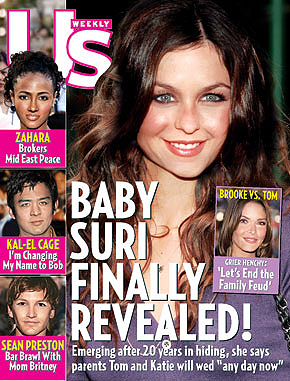 [OSEN=손남원 영화전문기자]2026년 할리우드를 달굴 연예인 2세들의 모습은 어떨까? 미국의 연예주간지 'Us' 최신호는 컴퓨터 합성으로 톰 크루즈-케이티 홈즈 사이의 첫 딸 수리를 비롯해 안젤리나 졸리-브래트 피트 커플이 입양한 딸 자하라, 니콜라스 케이지의 아들 칼-엘 케이지, 브리트니 스피어스의 아들 션 프레스톤, 기네스 펠트로의 딸 애플 등의 가상 사진을 게재해 눈길을 끌었다. 'Us'는 부모와 아기들의 개별적 특징과 유전 요소를 컴퓨터로 분석해 20년 뒤 이들이 성장한 모습을 그래픽으로 만들었다는 것. 호텔 재벌인 힐튼가의 상속녀 패리스 힐튼이 요즘 화제를 뿌리고 다니는 것처럼 톱스타 2세들의 장래 성향까지 가상 기사로 게재했다. 이 주간지가 가장 공을 들인 아기는 아직까지 외부에 모습을 드러내지않고 있는 톰 크루즈의 딸 수리. 수리 만큼은 사진을 구하지 못해 그를 보고 나왔다는 사이언톨로지교 간부들의 증언을 종합해 인상착의를 만들었고 표지를 장식했다. 'Us'는 '언제 우리는 수리를 볼수 있을까'라는 타이틀의 수리 시계를 만들어 크루즈에게 아기 공개를 압박하고 있다. 28일 오전(한국시간) 수리 시계는 101일 8시간 37분 12초를 알리는 중이다. mcgwire@osen.co.kr 'Us' 표지사진