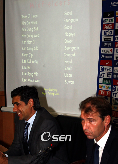 축구대표팀의 핌 베어벡 감독이 대만전(8월 16일)에 앞서 36명의 예비명단을 발표했다. 28일 베어벡 감독이 직접 호명한 36명 명단에 따르면 25명은 25세 이하의 젊은 선수들이고 15명은 베어벡 감독과 처음으로 함께 하는 선수들이다. 30대 초반의 이을용(서울)과 안정환(뒤스부르크) 김상식 김영철(이상 성남)을 제외하면 대표팀의 ⅔ 가량이 20대 중반 이하의 선수들로 꾸려졌다. 9명은 생애 처음 태극마크를 달게 됐다. 대표팀이 확 젊어진 것이다. 이들은 다음 달 6일 낮 12시 파주NFC(국가대표팀트레이닝센터)에 소집돼 4일 후 대만으로 갈 최종 20명으로 추려진다. 그렇다면 '젊은 피'를 대거 대표팀에 합류시킨 베어벡 감독은 36명 과연 몇 명을 대만으로 데려갈 것인가. 베어벡 감독은 "최고의 컨디션과 몸 상태를 가진 선수가 그 대상"이라고 원론적인 설명을 했다. 사실상 젊은 선수들을 실전까지 데려가기에는 무리가 따른다고 판단을 한 것으로 풀이된다. 젊은 선수들을 많이 중용한 것은 이들을 기량을 눈 앞에서 보면서 가능성과 잠재력을 보겠다는 것으로 테스트 성격이 짙다. 대만이 국제축구연맹(FIFA) 랭킹 149위의 약체지만 과거 '오만 쇼크', '몰디브 쇼크' 등 '악몽'을 경험했던 대표팀으로선 독일 월드컵에 참가했던 기존 카드들을 무시할 수 없는 노릇이다. 예비명단 오른 36명 중 독일 월드컵에 나섰던 선수들이 17명이나 되는 점도 이를 뒷받침해준다. 큰 변수가 없는 한 기존 태극전사들 대부분이 대만행 비행기에 오를 것으로 예상된다. 그렇다면 이들과 공존할 최소 3명은 누구일까. 수비에는 김영철과 김상식(이상 성남), 김진규(이와타) 외에 한 명의 중앙 수비수를 승선시킬 것으로 보인다. 독일 월드컵을 끝으로 은퇴한 최진철(전북)의 공백을 메울 선수 수급이 필요한 부분이다. 조용형(제주)과 조병국(성남) 조성환(전남) 등이 후보다. 미드필드진에는 유럽파들을 불러들이지 않기로 하면서 박지성(맨유)이 빠진 공격형 미드필더에 관심이 모아진다. 수비형 미드필더는 김남일(수원)과 이호(제니트) 이을용(서울) 등 자원이 넘쳐난다. 김두현(성남)이 무난히 이름을 올릴 것으로 보이는 가운데 2년만에 대표팀에 복귀한 이관우(수원)도 중용될 가능성이 있다. 포메이션에 관계없이 3명이 나서는 스리톱에는 안정환과 조재진이 원톱 스트라이커를 굳건히 지킬 것으로 예상된다. 만일 안정환이 유럽 무대에 잔류할 경우 소집되지 않을 가능성이 커 정조국(서울)이 기회를 잡을 수 있다. 윙포워드로는 이천수(울산)와 박주영(서울)이 버티고 있는 가운데 최성국(울산)이 유력한 승선 후보자로 떠오르고 있다. 기존 선수들이 베어벡 감독의 기대에 못 미칠 경우 '젊은 피'들에 기회는 더욱 많이 돌아갈 전망이다. iam905@osen.co.kr 박영태 기자 ds3fan@osen.co.kr