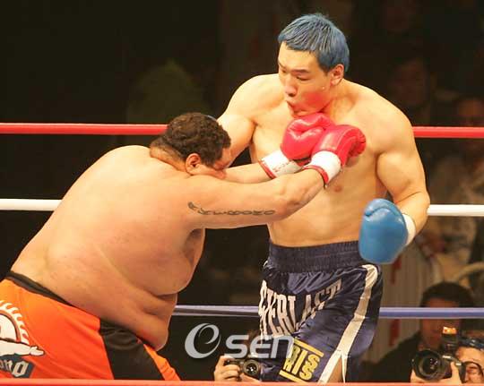 '테크노 골리앗' 최홍만(24)이 세번째 대결에서도 일본 스모 챔피언 출신의 아케보노(37)에 가볍게 승리했다. 최홍만은 30일 일본 삿포로 마코마나이 실내경기장에서 열린 'K-1 리벤지 2006' 대회 리벤지 3경기에서 아케보노를 만나 시종 몰아부친 끝에 2라운드 57초 만에 KO시켰다. 지난 해 3월 'K-1서울대회'에서 아케보노를 1회 TKO승을 거둔 뒤 같은 해 7월 미국 하와이에서 열린 'K-1 하와이' 대회 슈퍼파이트에서 다시 1라운드에 TKO로 승리했던 최홍만은 같은 상대에만 3연승을 달렸다. 전설적인 K-1 스타 앤디 훅의 7주기를 추모하는 대회로 열린 리벤지 대회에서 최홍만은 아케보노의 '복수'를 허락치 않았다. 최홍만은 1라운드에서 오른쪽 라이트와 로킥으로 아케보노를 제압하며 산뜻하게 경기를 시작했다. 이어 최홍만은 2라운드 57초 만에 라이트 펀치로 데미지를 준 뒤 그로기 상태에 빠져 균형을 잡던 아케보노에 왼쪽 펀치를 안기며 쓰러뜨렸다. 오는 9월에 있을 월드 그랑프리 개막전에 출전하는 최홍만은 가볍게 경기를 마무리지었다. 한편 2004년 6월 나고야 대회 승리 이후 2년 만에 게리 굿리지(트리니다드 토바고)와 만난 피터 아츠(네덜란드)는 하이킥으로 분위기를 빼앗은 뒤 펀치로 공격을 퍼부어 승기를 잡았고 3라운드에서 상대 훅 공격에 주춤하기도 했지만 노련하게 경기를 운영하며 심판전원일치 판정승을 거뒀다. 지난 해 11월 월드 그랑프리 4강전에서 일본의 자존심 무사시를 니킥으로 무너뜨렸던 글라우베 페이토자(브라질)는 8개월 만에 다시 만나 3라운드 종료 10초를 남기고 오른손 펀치로 다운을 빼앗은 끝에 3-0 판정승을 따냈다. '플라잉 젠틀맨' 레미 보냐스키(네덜란드)는 이날 열린 4차례 '리벤지' 매치에서 유일하게 '복수'에 성공한 선수가 됐다. 지난 해 K-1 라스베가스 대회에서 자신에게 패배를 안긴 마이티 모(미국)를 상대로 보냐스키는 1라운드에서 '플라잉 니' 등 킥으로 공략한 뒤 3라운드 로킥과 하이킥을 적절히 섞어가면서 모를 몰아부쳐 3-0 판정승을 따냈다. 챌린지 매치에서는 아마다 히로미(일본)가 프레디 케마요(프랑스)에 막판 로킥을 무더기로 허용했지만 복싱 기술로 상대를 제압하며 2-0 판정승을 거뒀고, 스위스의 장신 파이터인 비욘 브레기는 강한 펀치력과 니킥으로 3차례 다운을 빼앗으며 일본의 나카사코 츠요시를 KO로 물리쳤다. 폴 슬로윈스키(폴란드)와 후지모토 유스케(일본)는 각각 토미히라 타쯔후미(일본)와 바비 올로건(나이지리아)을 각각 심판전원일치 판정승으로 이겼다. ■ K-1 리벤지 2006 결과 ▲챌린지 1경기 아마다 히로미(일본) 2-0 판정승 프레디 케마요(프랑스) ▲챌린지 2경기 비욘 브레기(스위스) 1라운드 2분35초 KO승 나카사코 츠요시(일본) ▲챌린지 3경기 폴 슬로윈스키(폴란드) 3-0 판정승 토미히라 타쯔후미(일본) ▲챌린지 4경기 후지모토 유스케(일본) 3-0 판정승 바비 올로건(나이지리아) ▲리벤지 1경기 피터 아츠(네덜란드) 3-0 판정승 게리 굿리지(트리니다드 토바고) ▲리벤지 2경기 레미 보냐스키(네덜란드) 3-0 판정승 마이티 모(미국) ▲리벤지 3경기 최홍만(한국) 2라운드 57초 KO승 아케보노(일본) ▲리벤지 4경기 글라우베 페이토자(브라질) 3-0 판정승 무사시(일본) iam905@osen.co.kr 지난해 3월 19일 그랑프리 서울 대회 최홍만-아케보노의 준결승전.