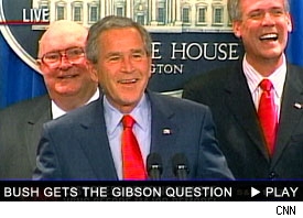 [OSEN=손남원 영화전문기자]조지 부시 미 대통령이 2일(한국시간) 백악관 공식 기자회견에 앞서 출입기자들로부터 "멜 깁슨을 용서할수 있겠냐"는 질문을 받은 것으로 뉴스전문 케이블 방송 CNN이 보도했다. 질문자가 누구인지는 밝혀지지 않았지만 부시 대통령은 "샘 도날드슨이 물은 거 아닌가요? 그냥 잊어버려요"라고 웃음으로 얼버무렸다. 이날 백악관 웨스트 윙의 프레스롬에서 진행된 공식 기자회견에 앞선 잠깐의 해프닝인 셈. 그러나 이라크전을 치르고, 이스라엘의 레바논 침공 사태를 겪고 있는 부시 대통령과 그 참모들 입장에서는 가시 돋힌 질문이었던 게 분명하다. 할리우드의 톱스타이자 영화 감독, 제작을 겸하고 있는 멜 깁슨은 지난달 28일(한국시간) 음주운전으로 적발된 뒤 유대인 비하 발언을 내뱉어 곤욕을 치르고 있다. 깁슨은 적발 당시 보안관에게 "세상 모든 전쟁의 책임은 유대인에게 있다"고 말했고, 이로 인해 유대인 자본의 입김이 센 할리우드에서 졸지에 왕따를 당하는 중이다. 깁슨은 LA 인근 한 레스토랑에서 만취하도록 술을 마신 뒤 자신의 차를 몰고가다 단속됐다. 현지 경찰에 따르면 깁슨의 혈중 알콜농도는 0.12로 캘리포니아 주정부 단속기준 0.08을 크게 넘긴 상태였다. mcgwire@osen.co.kr CNN 방송 화면
