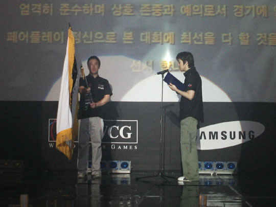 '가자 이탈리아 몬자로!'. 5일 서울 삼성동 코엑스 태평양홀에서 벌어진 'WCG 2006 국가대표 선발전' 첫날 경기에서 스타크래프트, 워크래프트 4강과 피파, 데드 오어 얼라이브, 니드 포스 피드 대표 선발이 완료됐다. 3명을 선발하는 스타크래프트 부문은 WCG 2005 우승자 였던 이재훈(CJ)이 아마추어 도재욱에게 2-1로 덜미를 잡히는 이변이 연출됐지만 더 이상의 이변은 없었다. 시드를 받은 조용호(KTF) 최연성(SKT) 박성준(MBC게임)이 16강에서 아마추어 게이머를 제압하고 8강에서 각각 송병구 박성준(이상 삼성전자) 박정석(KTF)을 누르고 4강행을 확정지었다. 2명이 진출하는 워크프래트 3에서는 노재욱 이성덕 김동문 봉석호가 각각 이진성 조대희 김성식 지윤구를 제압하고 4강에 올랐다. 가장 먼저 대표 선발을 완료한 부문은 피파 06. 피파 06은 주변의 예상대로 2001, 2002 WCG 국가대표 김두형과 2005 WCG 국가대표 박윤서가 윤성용, 최은성을 제압하고 대표에 발탁됐다. 데드 오어 얼라이브에서는 지난해 2005 WCG 동메달 수상자인 한동헌이 올라갔고 니드 포 스피드 부문에서는 유명춘이 3년 연속 대표선발을 달성했다. scrapper@osen.co.kr WCG 위원회 제공