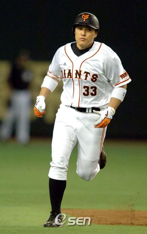 요미우리 이승엽(30)이 3일만에 시원한 홈런포를 재가동, 일본야구에서 뛴 한국인 선수 중 한 시즌 최다홈런의 주인공이 됐다. 시즌 35호이자 한일 통산 403호. 이승엽의 맹타에 힘입어 요미우리는 하룻만에 탈꼴찌에 성공했다. 이승엽은 5일 도쿄돔에서 열린 요코하마와의 경기에서 1-0으로 앞선 6회말 선두타자로 나선 세 번째 타석서 상대 좌완 선발 나수노와 맞서 볼카운트 1-3에서 5구째 123km짜리 변화구를 받아쳐 가운데 담장을 넘겼다. 이승엽은 또 2-3으로 역전당한 7회말 2사 만루에서 맞은 네 번째 타석서는 요코하마 구원투수인 우완 가와무라와의 대결에서 볼카운트 1-1에서 3구째를 통타, 2타점짜리 역전 적시타를 터트렸다. 우전적시타로 시즌 타점은 75개, 득점은 77개로 늘렸다. 이승엽은 다음 타자 다카하시 타석에서 2루 도루도 시도, 성공했다. 이날 성적은 5타석에 볼넷 한 개 포함 4타수 2안타 3타점 1득점으로 타율도 3할2푼8리에서 3할3푼으로 끌어올렸다. 또 4게임만에 멀티 안타를 기록. 이승엽은 6회 터진 시즌 35호 홈런으로 대선배 장훈이 1970년 도에이 플라이어스 시절 기록한 한국인 한 시즌 최다 홈런인 34개를 36년만에 뛰어넘었다. 이승엽은 1회말 첫 타석에서는 볼넷으로 출루했으나 두 번째 타석 3회 1사 2, 3루에서는 얕은 좌익수 플라이에 그쳐 타점을 올리는데 실패했다. 8회 마지막 타석에서는 유격수 땅볼로 물러났다. 요미우리는 8회초 수비서 동점 홈런을 내줘 4-4로 맞선 8회말 2사 1, 2루에서 대타 요시카와의 역전 2타점 적시타와 니오카의 투런 홈런으로 8-4로 재역전했다. 요미우리는 9회 1점을 내줘 8-5로 승리, 2연패에서 벗어나며 요코하마를 반게임차로 제치고 하룻만에 탈꼴찌에 성공했다. 한편 이날 경기 전 한국야구위원회(KBO) 하일성 사무총장이 지난 2일 한신전서 한.일통산 400호 홈런을 달성한 이승엽에게 기념패를 전달하며 시상식을 가졌다. 또 요미우리 구단도 특별격려금 1000만 엔(약 8400만 원)을 전달하며 축하했다. 시상식 후 이승엽은 덕아웃 앞에서 일렬로 서서 축하해준 요미우리 선수단과 악수를 나누며 감사 인사를 했다. sun@osen.co.kr