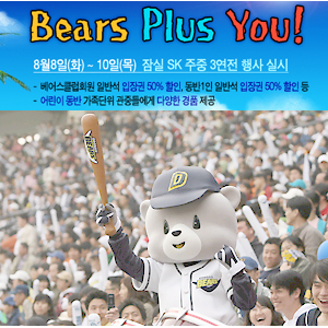 두산 베어스는 오는 8∼10일 잠실에서 열리는 SK 와이번스와의 주중 홈 3연전을 'Bears Plus You!'로 지정, 양팀 회원들에게 각종 혜택을 제공한다. 이 기간 중 입장하는 베어스클럽 회원 및 와이번스 회원은 일반석 입장권을 50% 할인된 가격에 구입할 수 있고, 동반자 한 명도 동일한 혜택을 부여받는다. 여름방학과 휴가철을 맞은 가족단위 관중이 저렴한 입장료로 야구 관전의 묘미를 맛볼 수 있는 기회다. 이밖에 두산은 이번 특별 행사 기간 중 어린이 팬에게 비치발리볼 300개, 바비인형 전시회 초대권 100매, 다빈치 전시회 초대권 100매를 선착순 증정한다. 가족 단위 관중에게는 행운권 추첨을 통해 에버랜드 자유이용권 50매, 벨루가 호텔 무료숙박권 10매, 강원랜드 호텔 무료숙박권 10매 등 여름 휴가철과 연계된 다양한 특별 팬서비스를 제공한다. 한편 평소 야구장을 찾기 어려운 장애우와 국군 및 경찰 장병은 이번 3연전 동안 무료로 입장이 가능하다. workhorse@osen.co.kr