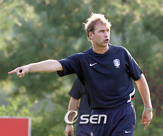 "생각할 줄 아는 지능적인 선수가 최종 엔트리 20명에 포함될 것이다". 핌 베어벡 신임 대표팀 감독이 취임 일성으로 발표한 '생각하면서 이기라(Thinking, winning)'는 슬로건에 걸맞는 선수들이 오는 16일 대만과의 2007 아시안컵 예선전에 출전하는 최종 엔트리 20명에 포함될 것이라고 밝혔다. 베어벡 감독은 대표팀 예비 엔트리 소집 첫 날인 6일 경기도 파주 대표팀 트레이닝 센터(NFC)에서 가진 훈련을 마친 뒤 인터뷰에서 "지능적인 플레이를 할 줄 알고 전술 이해도가 뛰어난 선수가 최종 엔트리에 들 수 있다"며 "한국 선수는 파워와 정신력이 충분하지만 결국 머리 좋은 선수가 대표팀에 포함될 수 있을 것"이라고 말했다. 이어 베어벡 감독은 "선수들은 많은 경기를 하면서 옳은 판단과 빠른 결정을 해야만 한다"며 "결국 이번 훈련은 어떤 선수가 판단을 옳고 빠르게 하는지 찾아내는 것"이라고 설명했다. 또 빠르고 옳은 판단을 하는 선수가 있느냐는 질문에 베어벡 감독은 백지훈을 대표적인 사례로 꼽은 뒤 "백지훈은 경험을 바탕으로 옳은 판단을 많이 내린다"며 "아직 뛰어난 역할을 하기엔 기량이 부족하지만 가능성은 높이 사고 있다"고 답했다. 한편 첫날부터 7대7 미니게임 등 강도 높은 훈련을 한 것에 대해 베어벡 감독은 "앞으로의 일주일은 선수들에게는 자신의 기량을 보여주고 대표팀에 포함될 능력이 된다는 것을 증명함과 동시에 코칭스태프들은 선수들의 장단점을 파악하는 기간"이라며 "이미 선수들의 정보를 모두 갖고 있지만 8차례 예정된 훈련을 통해 옥석을 가릴 것"이라고 말했다. 또 베어벡 감독은 "36명의 선수 중 16명이 최종 엔트리에서 빠진다고 해도 완전히 가능성이 없어지는 것이 아니라 언제나 예의주시하고 있을 것"이라며 "예비 엔트리에 포함된 선수들은 끝까지 최종 명단에 들기 위해 노력해야만 한다"고 당부했다. 차기 대표팀 '캡틴'이 누가 되겠느냐는 질문에 "세대교체를 하는 와중에도 이들을 이끌 수 있는 경험많은 선수가 주장이 될 것"이라고 답한 베어벡 감독은 "수비를 바탕으로 역습을 가하는 대만같은 약팀과 대적하기 위해서는 공을 빨리 돌리고 창의적이고 과감한 결단을 할 수 있는 선수가 필요하다"고 밝혔다. tankpark@osen.co.kr 파주=손용호 기자 spjj@osen.co.kr