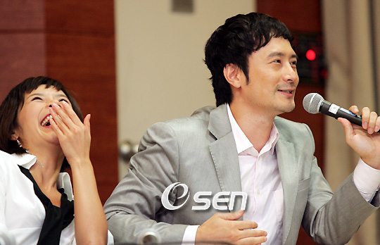 6일 경기도 남양주 양수리 종합 촬영소에서 추석에 개봉될 예정인 영화 '가문의 영광3 - 가문의 부활' 현장공개를 했다. 기자 간담회에서 전 백호파 막내 아들로 새로운 가업인 김치회사 '엄니 손' 택배 사업 본부장을 맡고 있는 '장졍재' 임형준이 "지금까지 영화에서 상대 여배우가 한번도 없었는데 이번에는 사랑에 빠지는 장면이 있어 이렇게 즐거운 촬영일 수가 없다. 배우들이 스캔들 나는 이유를 이제야 알것 같다"고 이야기하자 신이가 박장대소 하고 있다. /주지영 기자 jj0jj0@osen.co.kr