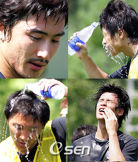 불볕 더위도 줄줄 흘러내리는 땀을 말릴 수는 없었다. 대만전 엔트리 발표를 하루 앞둔 탓인 지 대표팀 훈련에 나선 예비 엔트리 28명의 움직임은 더욱 날랬다. 대만행 비행기에 오르기 위해 비지땀을 쏟고 있는 '1기 베어벡호' 28명의 훈련이 계속됐다. 이들은 9일 파주NFC(국가대표트레이닝센터)에서 가진 대표팀 훈련에서 대만전(16일.아시안컵 예선) 엔트리(20명)에 들기 위한 생존의 몸부림을 펼쳤다. 지난 6일 소집해 나흘 훈련을 한 베어벡 감독은 10일 오전 훈련을 끝내고 오후 3시 20명의 최종 엔트리를 발표하게 된다. 베어벡 감독은 나흘간의 훈련을 종합해 이날 밤 20명의 옥석을 고를 전망이다. 20명이 남는 '서바이벌 게임'은 사실상 9일 오후 훈련이 마지막이었던 셈이다. 선수들도 마지막이란 것을 알았을 터. 온 몸에 비를 맞은 듯 연신 흘러내리는 땀을 닦을 사이도 없이 1시간 반 가량 진행된 훈련을 소화했다. 팔짱을 낀 베어벡 감독의 눈은 더욱 날카로웠고 선수들은 1%라도 더 보여주기 위해 몸을 날렸다. 오전에 세 차례 11대11 미니게임을 펼친 것과 달리 오후에는 부분 전술에 상당 시간이 할애됐다. 송종국 오범석 장학영 조원희 측면 요원들이 크로스를 올리고 공격수와 미드필더들이 2인 1조로 문전으로 침투해 슈팅을 때리는 훈련, 포백 라인으로 틀을 맞춘 수비수들의 조직력 훈련, 중앙 미드필더들의 공격 전개 훈련, 공격수 간의 위치 선정 훈련 등이 이어졌다. 해가 뉘엿뉘엿 지고 그림자가 생길 무렵에야 마지막 '생존 경쟁'은 마무리됐다. 마치 소나기라도 맞은 듯 선수들의 얼굴과 훈련 유니폼은 물기를 가득 머금었다. 훈련 뒤 중고참들은 다소 여유를 즐긴 반면 새로 합류한 '젊은 피'들은 땀을 닦기 바빴다. 베어벡 감독의 눈을 사로잡지 못한 선수는 이제 닷새 간의 '파주의 추억'을 뒤로 한 채 소속팀으로 돌아가야 한다. FA컵 8강에 오른 FC 서울, 수원 삼성, 전남 드래곤즈 선수들도 12일 열리는 경기를 위해 일시적으로 파주NFC 문을 나서게 된다. 자랑스런 대만전 엔트리 '훈장'을 달고 나설지 관심이 모아지는 부분이다. 한편 베어벡 감독은 러시아파(김동진 이호)와 일본파(조재진 김진규), A3 대회에 참가한 울산 선수들(이천수 최성국 이종민)을 포함한 35명(이강진은 부상으로 제외) 가운데 20명의 최종 멤버를 낙점해 오는 14일 대만으로 날아갈 예정이다. iam905@osen.co.kr